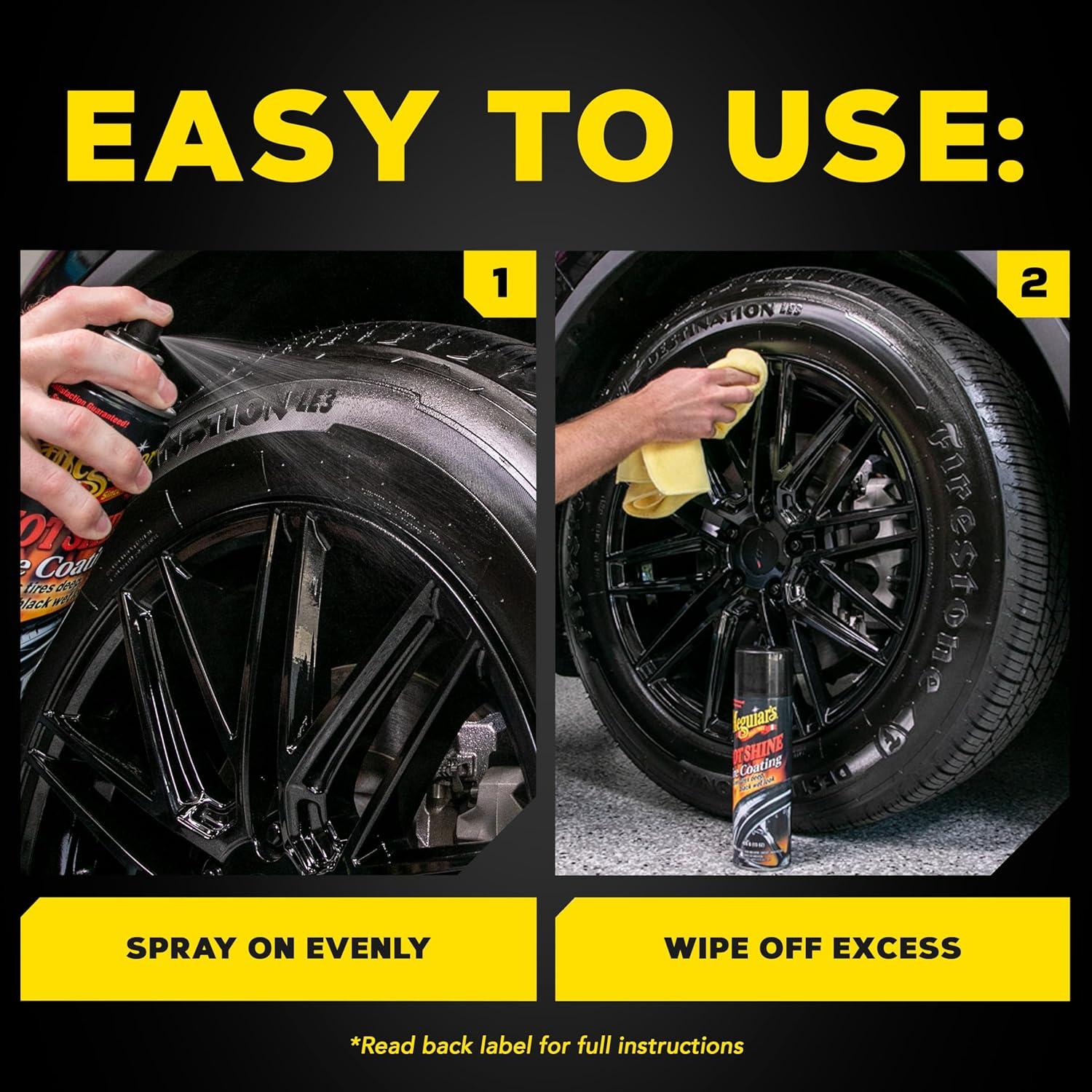 Meguiar’s Hot Shine High Gloss Tire Coating, Give Tires a Deep Wet Shine and Long-Lasting Protection with an Advanced Self-Spreading Formula, 15 Oz Aerosol Spray Can(15 Oz)